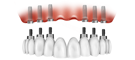 El All-on-Six consiste en colocar seis implantes dentales estratégicamente en el maxilar o mandíbula, los cuales actúan como soporte para una prótesis fija completa.